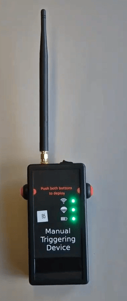 The manual trigger device allows you to verify parachute system status before flight.