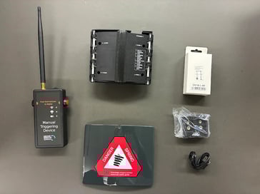 Power the manual trigger device: Insert the battery into the manual trigger device and turn it on.