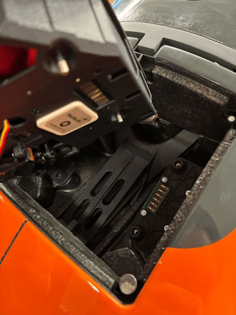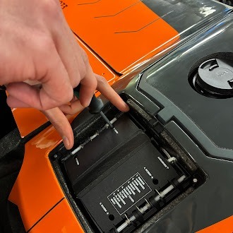 - Remove the existing parachute bay cover using a credit card or your fingernails.