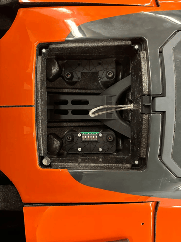 Power on the drone: Insert the batteries into the WingtraRAY and power it on using the power button.