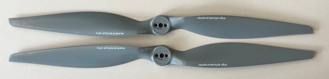 High-altitude propellers are optimized for the thin air of high altitudes (1500 to 5000 m). They come in pairs and are mounted as replacements to normal propellers, using the same washers and nuts. For step-by-step instructions on how to replace the propellers, read the article Replace the propellers.